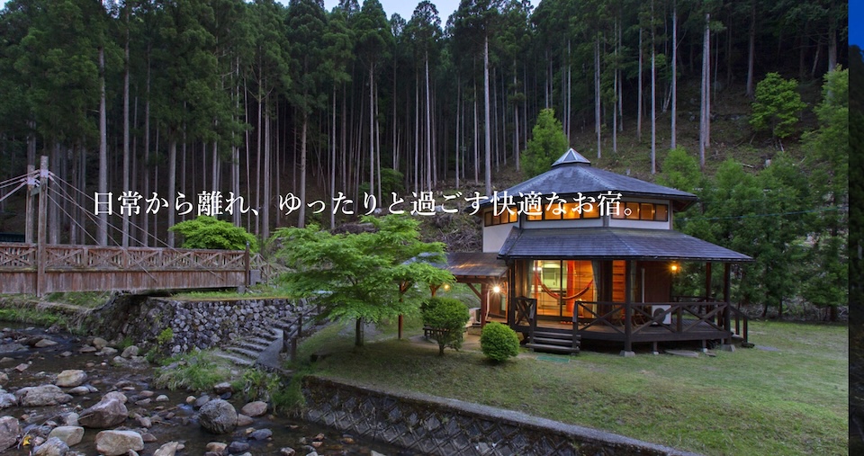 天然温泉付きの山の家本館、コテージ、キャンプ場から選べます。